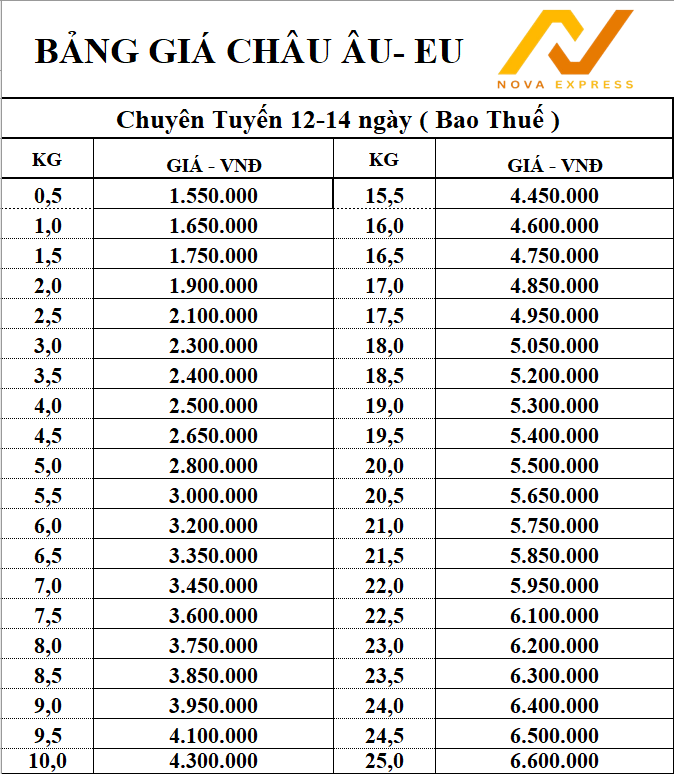 Bảng Gía Cước Hàng Đi Đức – Germany