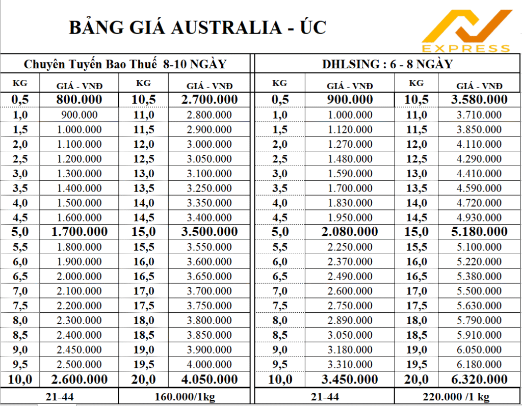 Bảng Giá Cước Hàng Đi USA – MỸ
